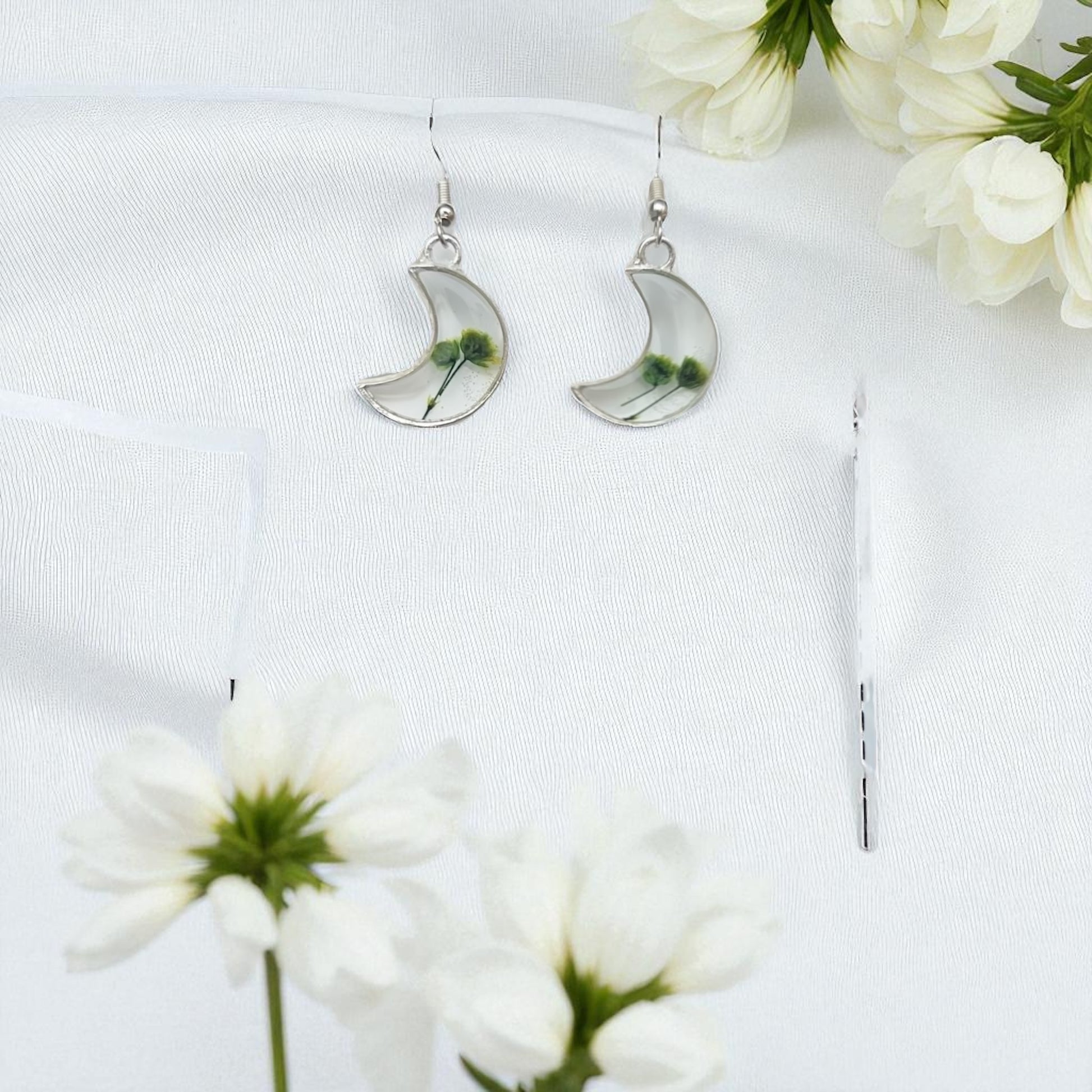 Handcrafted with real preserved foliage, these crescent moon earrings encapsulate a piece of the forest. Wear a whisper of nature's magic and let your style moon-gaze.